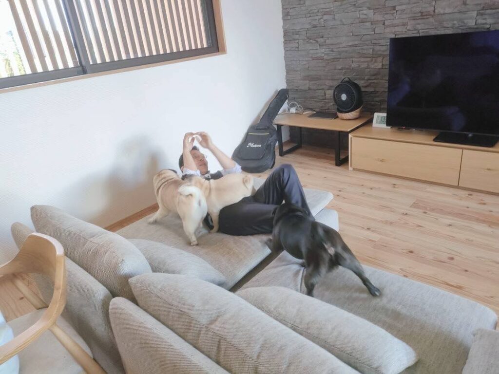 お引き渡しして4カ月ほどですが、ワンちゃんたちの臭いを全く気付かせない健康住宅。さすがですね。