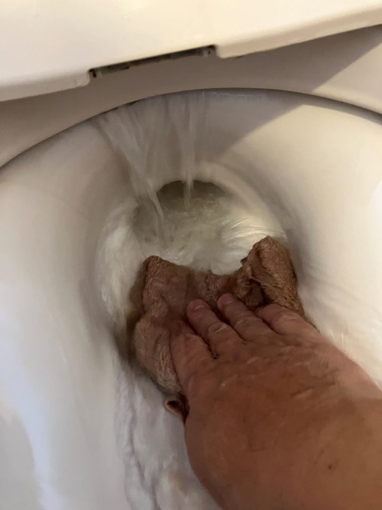 便器便座は裏の手の届かない所まで、時には便器に抱きついて奥の奥まで。