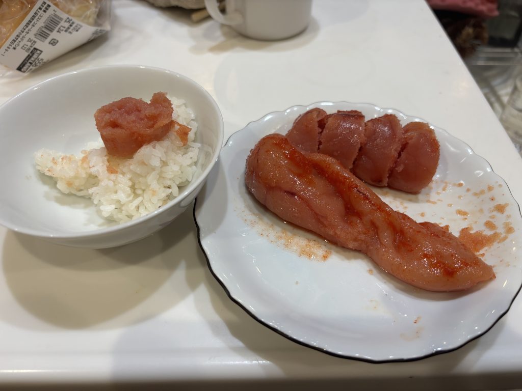 最後に家族へと自分へのお土産は明太子でした。あれ、気づけばまたプリン体・・・(^^)