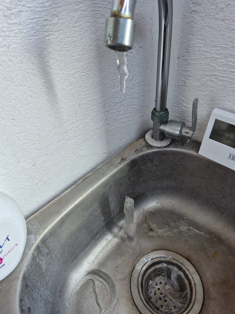 スタッフブログblog 2025.02/26 つらら?? スタッフブログ 前回のブログ担当日も雪の日の後でしたが、 一昨日もまた、雪が降りました。 朝、カーテンを開けてみたら、 雪がちらついており、 ブロック塀や屋根がうっすらと 雪化粧していました。 昨日の朝は、気温-3℃! 外の水を使おうとしたら、 このとおり!! 蛇口とシンクに見事な氷柱が!!! 水道の凍結防止に、 誰かが少しだけ蛇口をひねって水を 出しっぱなしにしていたのでしょうか。 珍しい現象を見ることができました✌️ 一覧へ戻る