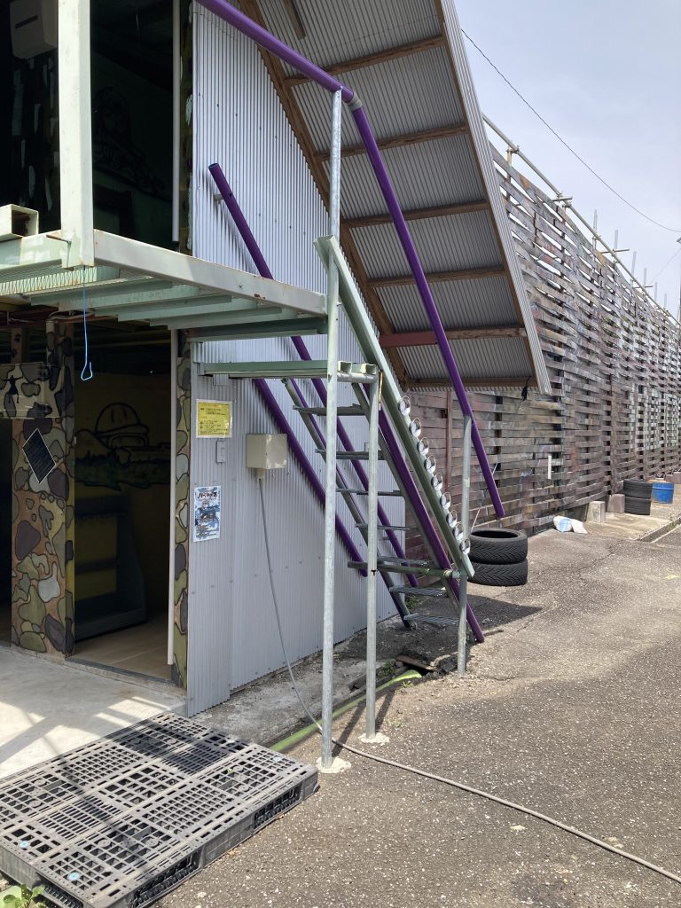 お店の外には、遊具が設置された広場もあります。なんと、シューティングレンジ(エアガンの試し撃ち場)もあります!