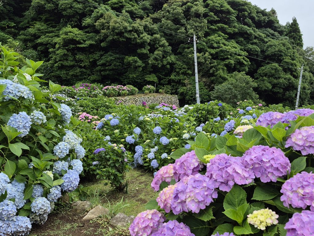 段々畑だった山の斜面に約1500株の紫陽花が植えられているとのこと。