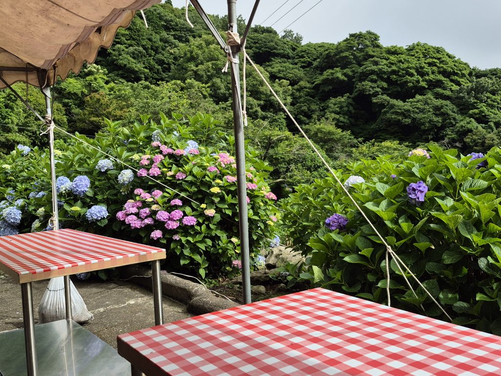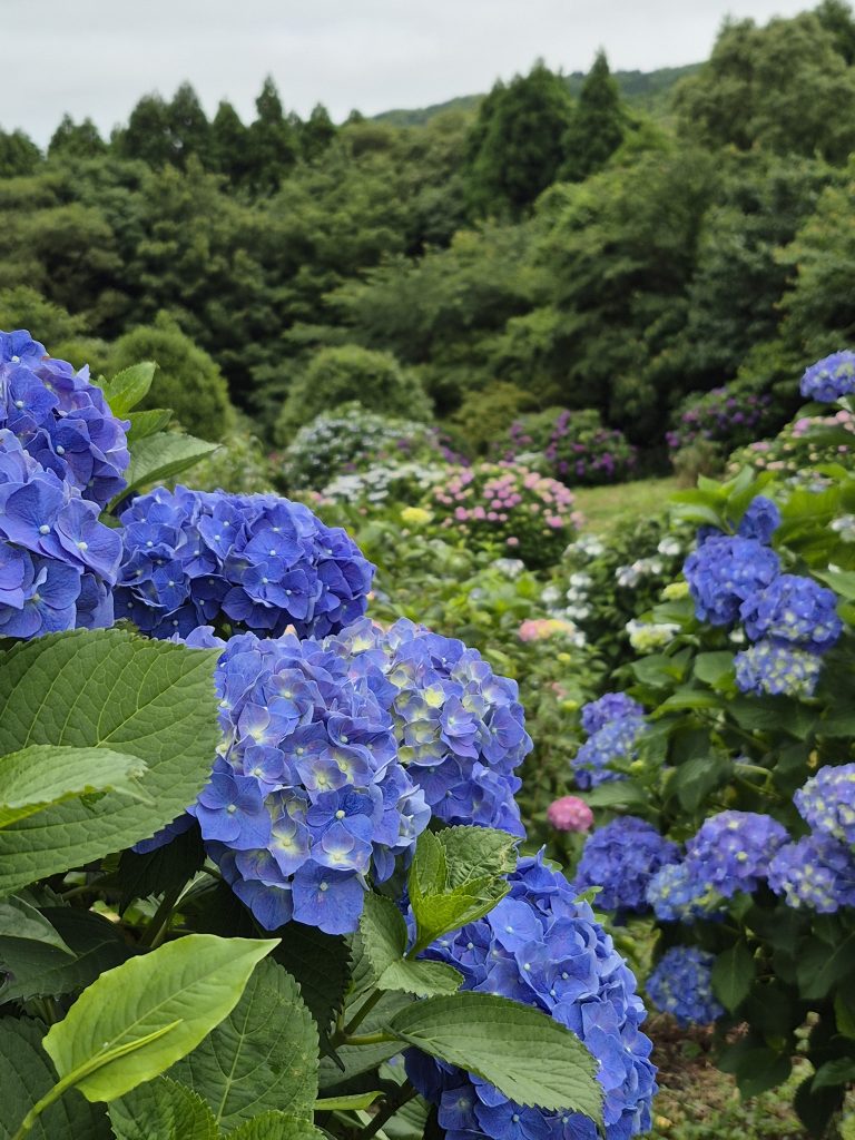紫陽花畑と、その先の東シナ海を眺めながら、