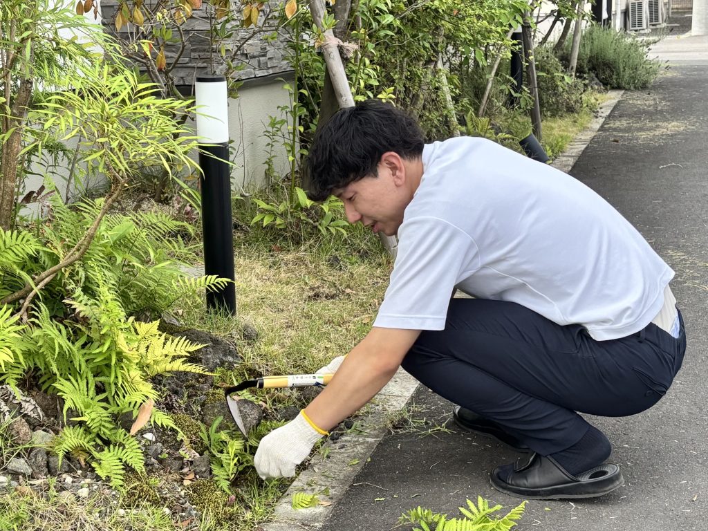 スタッフブログblog 2025.07/03 外掃除 スタッフブログ こんにちは、暑がりの谷川です。 先日姶良霧島店の外回りを営業の皆さんと姶良霧島店のメンバーで掃除しました。 草刈りは芝の高さまでこだわり綺麗な仕上がりに!(写真:上尾崎課長) 木々の剪定もバランスを見てスッキリと!(写真:勇二店長) (写真:田畑さん) 汗だくになり大変でしたが、終わると綺麗になって清々しい達成感がありました! 暑くても掃除はいいなと思った日でした。 一覧へ戻る