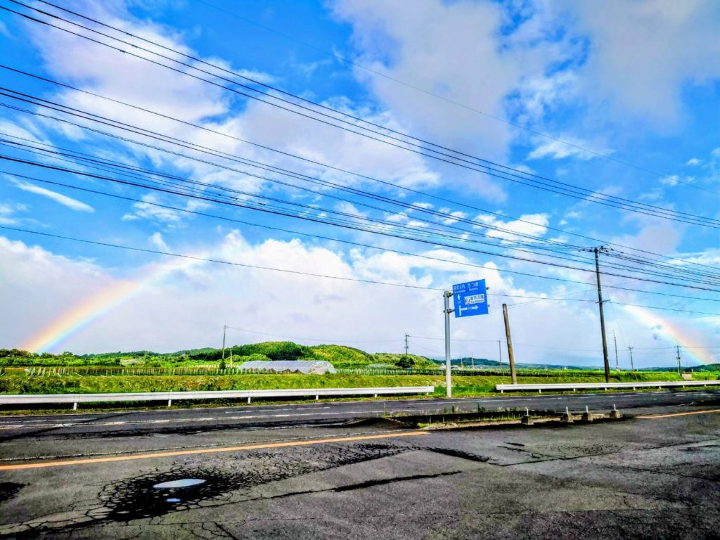 祭り開始の数時間前から急な悪天候に見舞われ土砂降りとなり、一時はどうなることかと思いましたが夕方には雨も弱まり程よい具合に気温も下がり、久しぶりに綺麗な虹も見ることが出来ました。 近くの駐車場で虹を撮影してると、祭りへ訪れていた方々も同じく車を停め、初めましてでしたが思わぬ交流があり、虹を眺めながら語らっていました。
