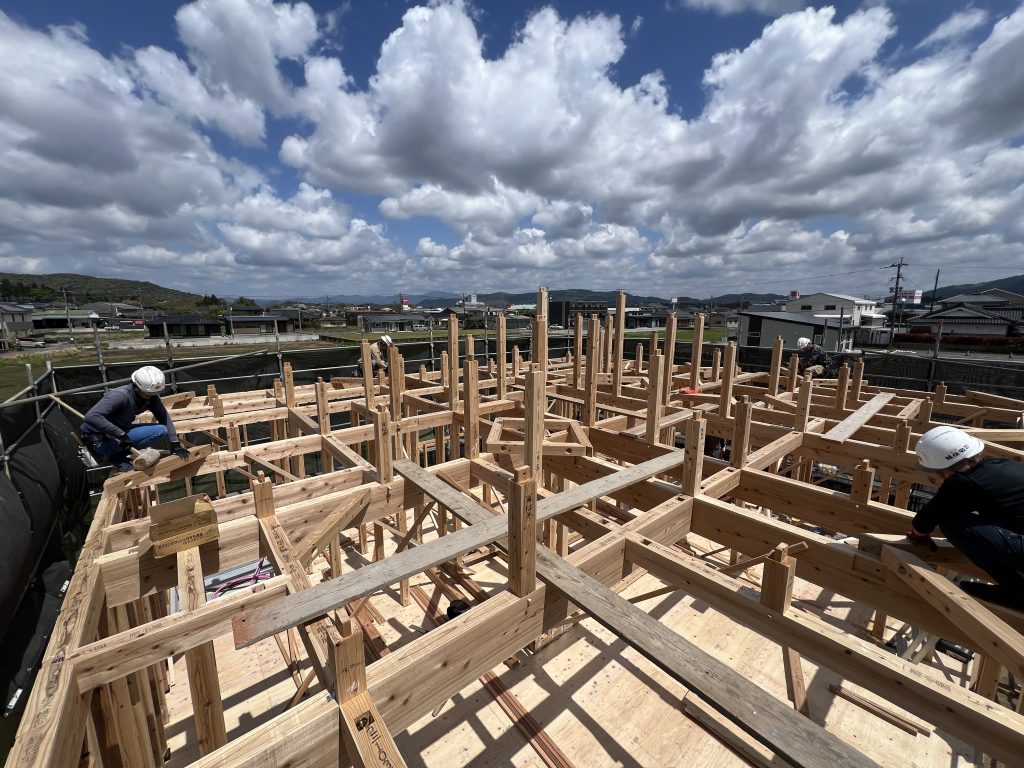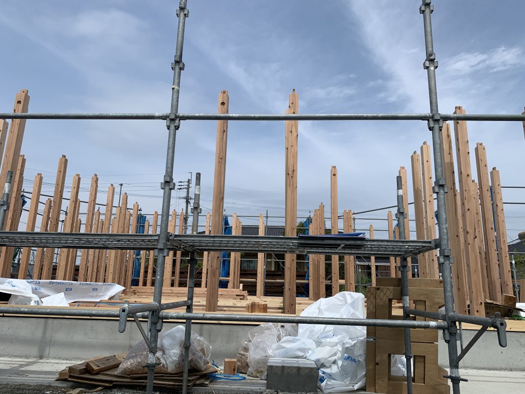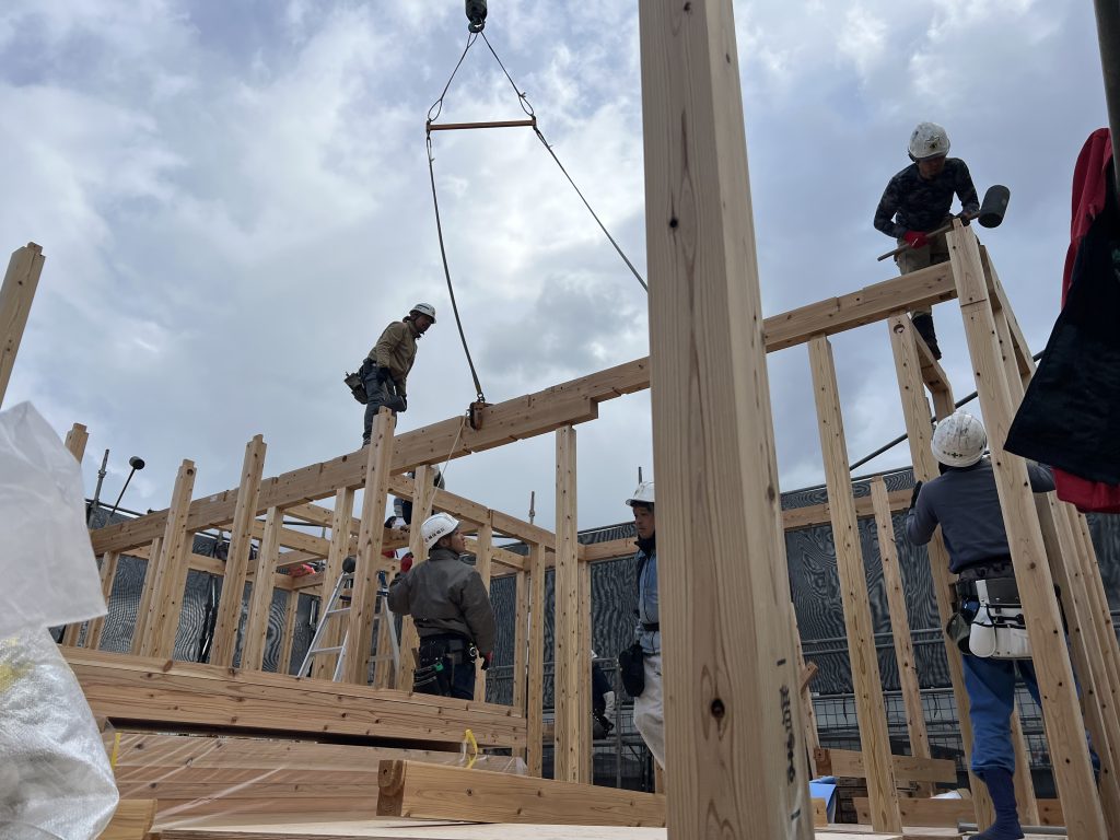 この状態から1日から2日にかけて一気に家の形にしていく事が主に建て方と言います。