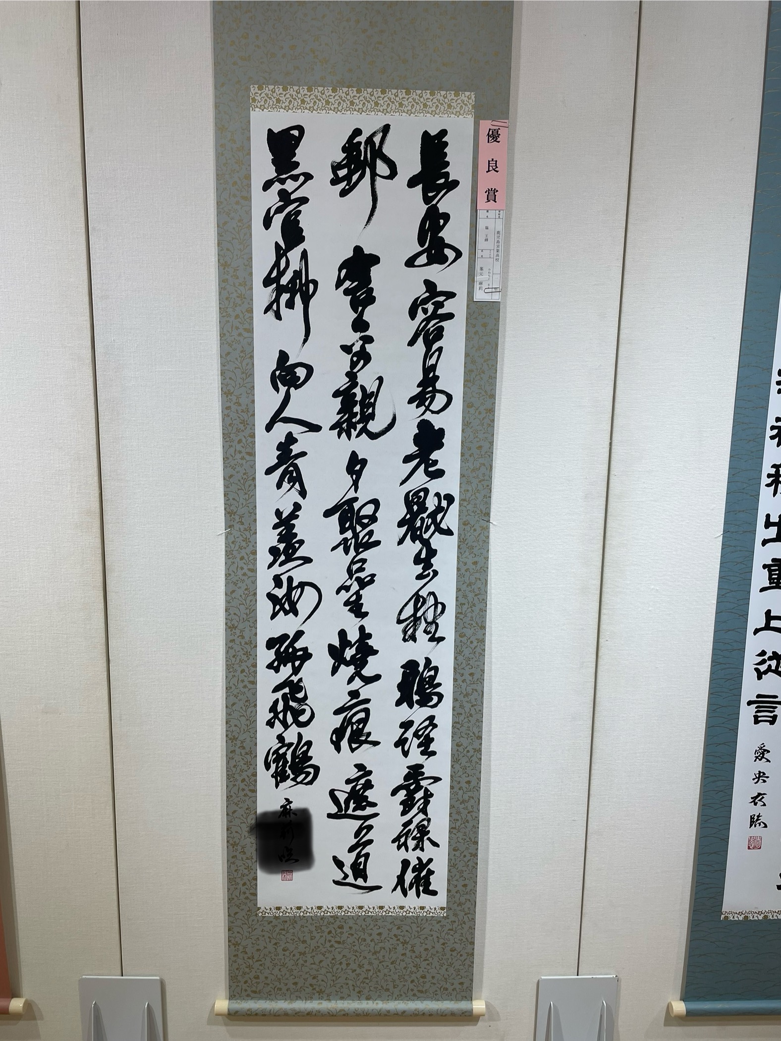 スタッフブログblog 2025.10/09 娘の習字 スタッフブログ 娘が鹿児島実業の書道部にいますが、小学校の頃からの書道教室も通っておりまして、今回高校書道コンクールと書道教室からのコンクールの方で表彰され展示しているとの事で見に行きました。 書体が難しい様ですが維新ふるさと館の方は綺麗だねーと感心してましたが、県高校書道展の方は難しい文字だねー何て書いてあるのかうーんという文字ですね。 再来週は全国からの方でも表彰されたとの事のようで、日帰りで福岡に行ってこようかと思います。 一覧へ戻る