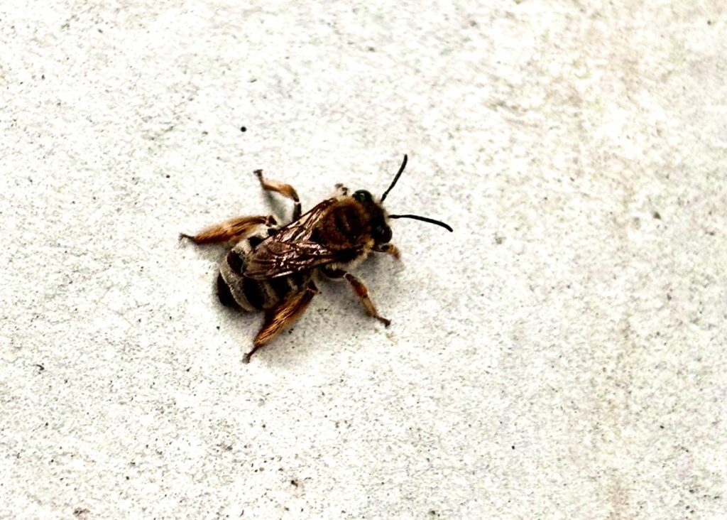 なんとミツバチが自宅付近でのそのそ動いているのを見つけました。