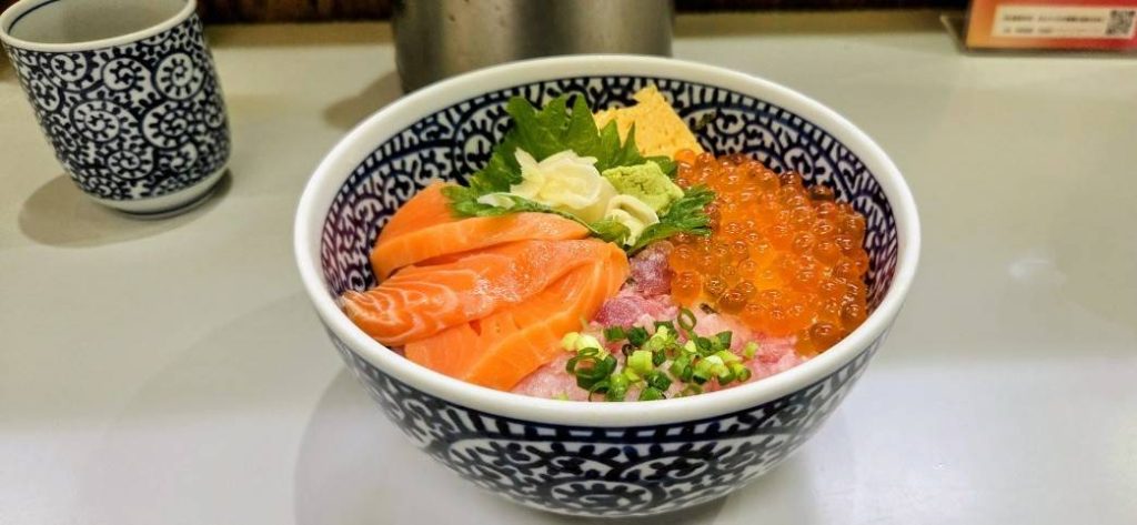 初日は羽田空港到着がお昼時でしたので、築地市場に行き海鮮丼を食べました。
