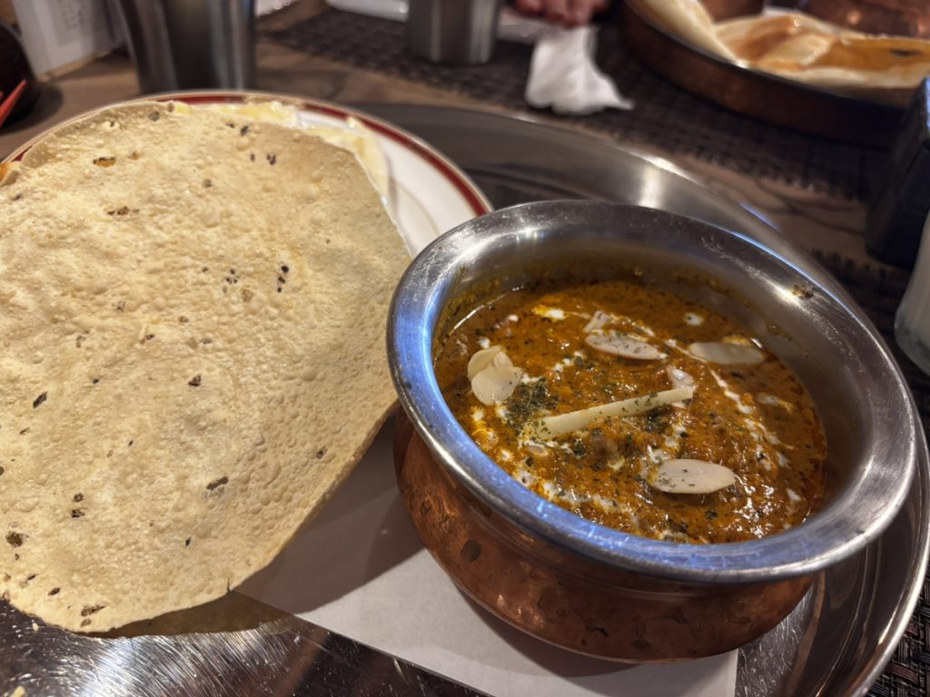 ちなみに薄い白いのがパパドというらしいです。こちらも煎餅みたいでおいしかったです。