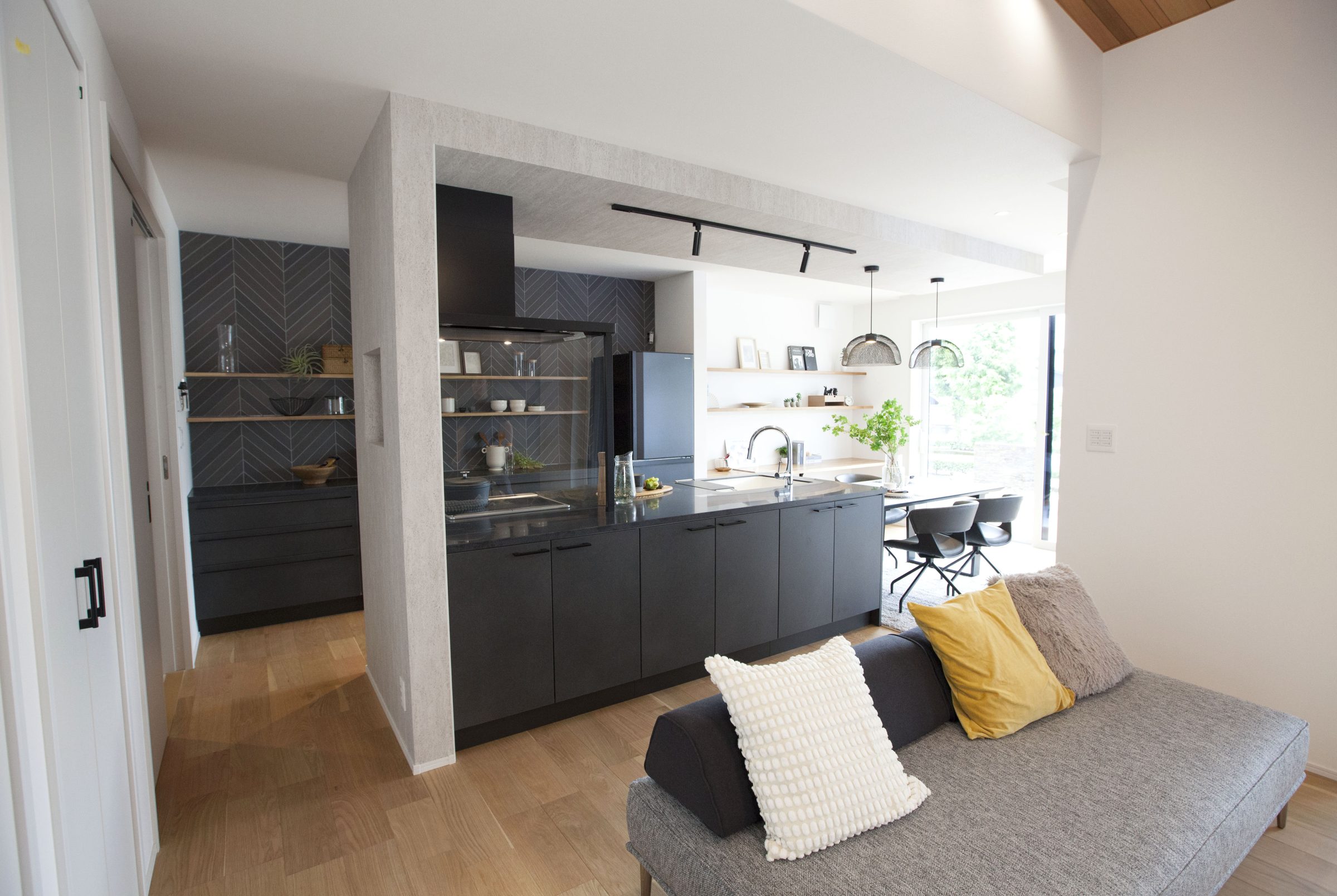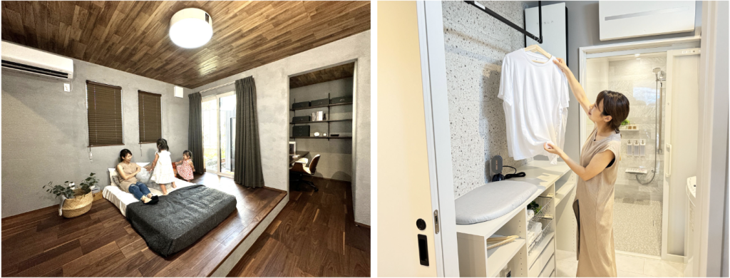 家事の導線を計算し、家族のゆとり時間を生み出すプランニングで、家族がともに過ごす時間、一人ひとりが自由に過ごす時間、どの瞬間もゆったりと、心も身体も安らぐことのできる、癒される空間を創造する住まいです。