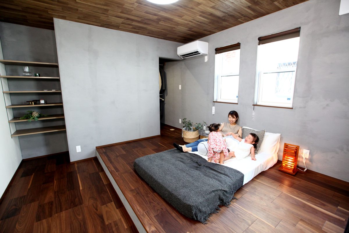 - 1日の終わりにやすらぎをつくる、漆喰仕上げの寝室。