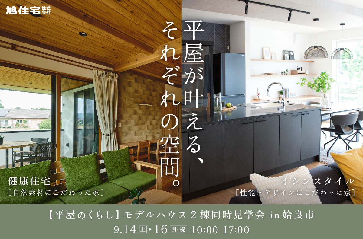 今回はそんな旭住宅が手掛けた平屋のモデルハウスを2棟同時公開いたします。