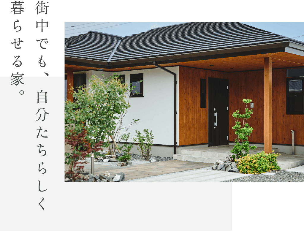 街中という立地を活かしながらも、外からの視線をほどよく遮る配置や間取りで、プライベートをしっかり確保。