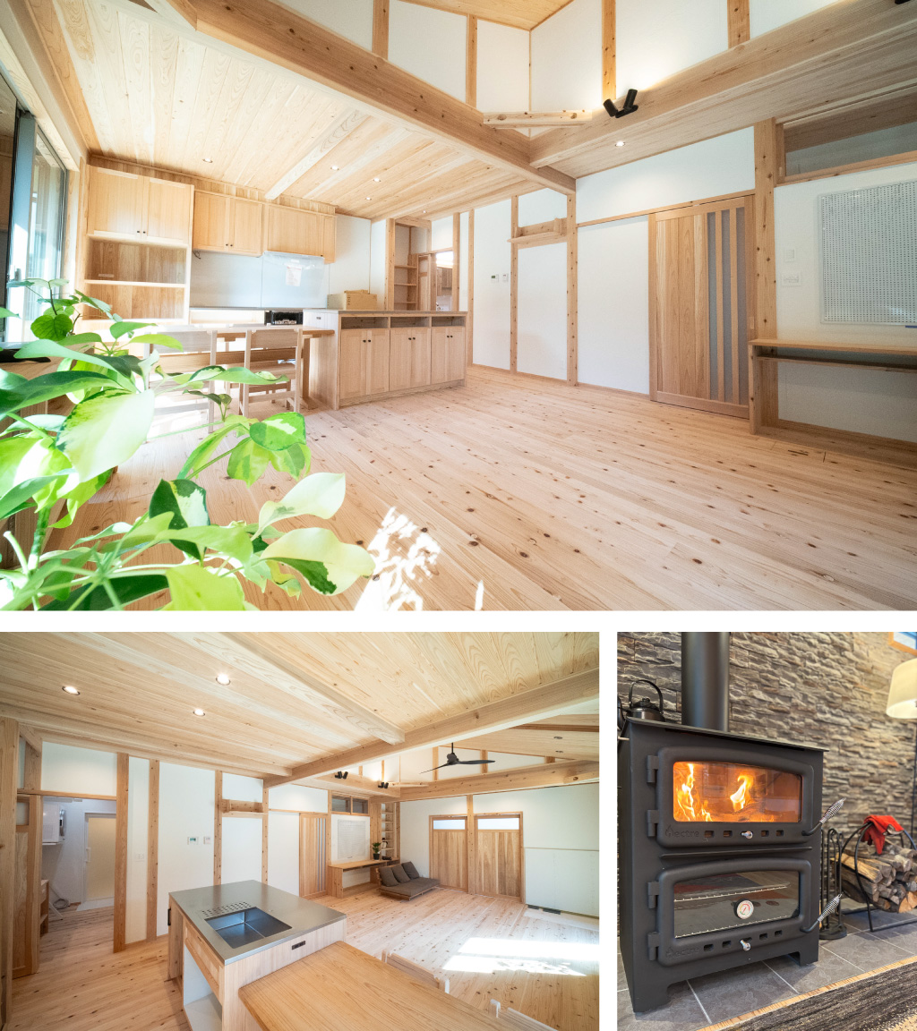 ご夫婦がこだわったのは、造作のⅡ型キッチンと薪ストーブ。