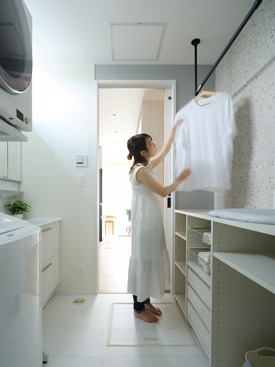 壁の漆喰は、住まいの空気をいつまでも綺麗に保つ「幻の漆喰」を贅沢に使用。心地のいい空気が1日の疲れを癒してくれます。