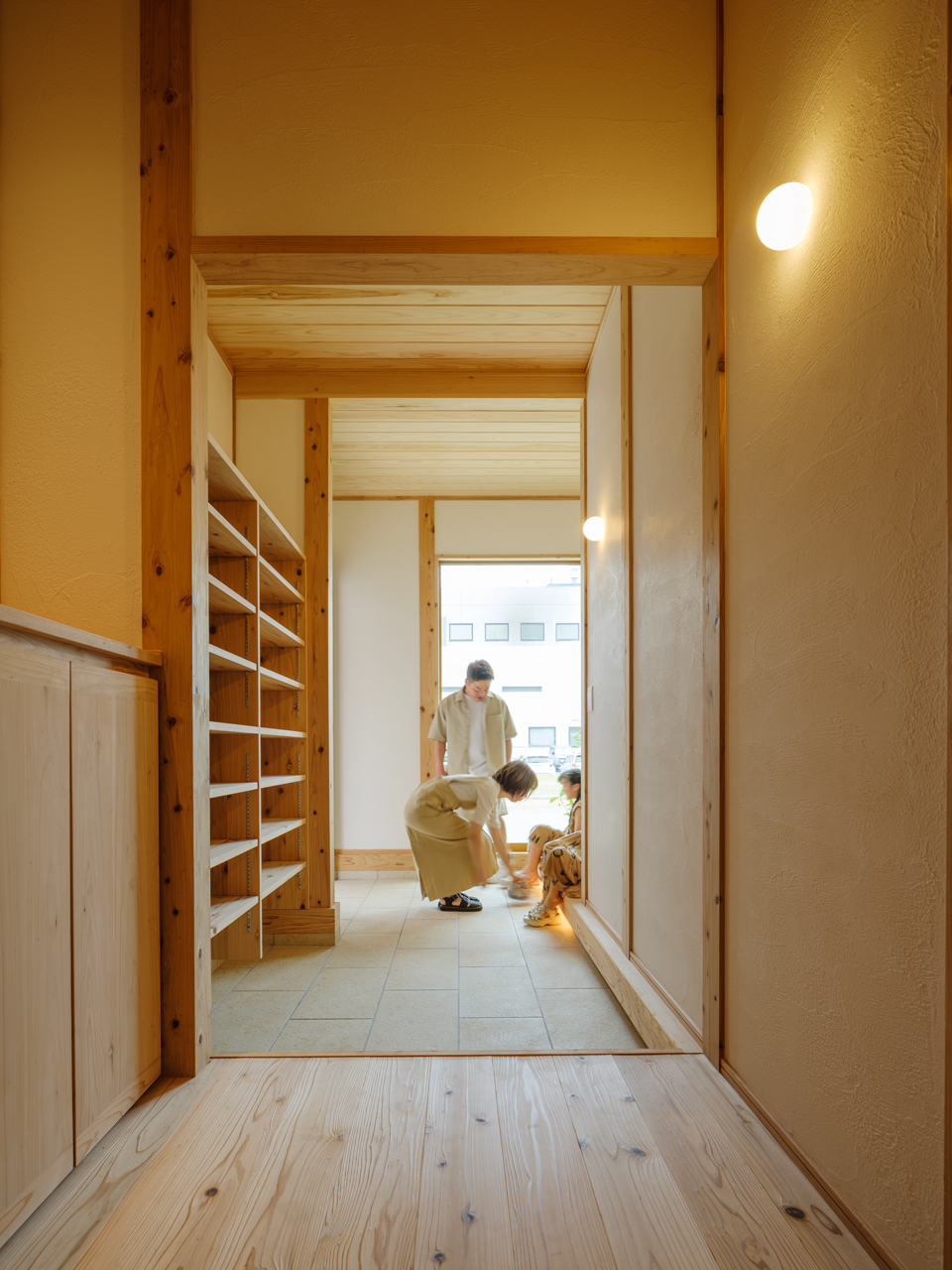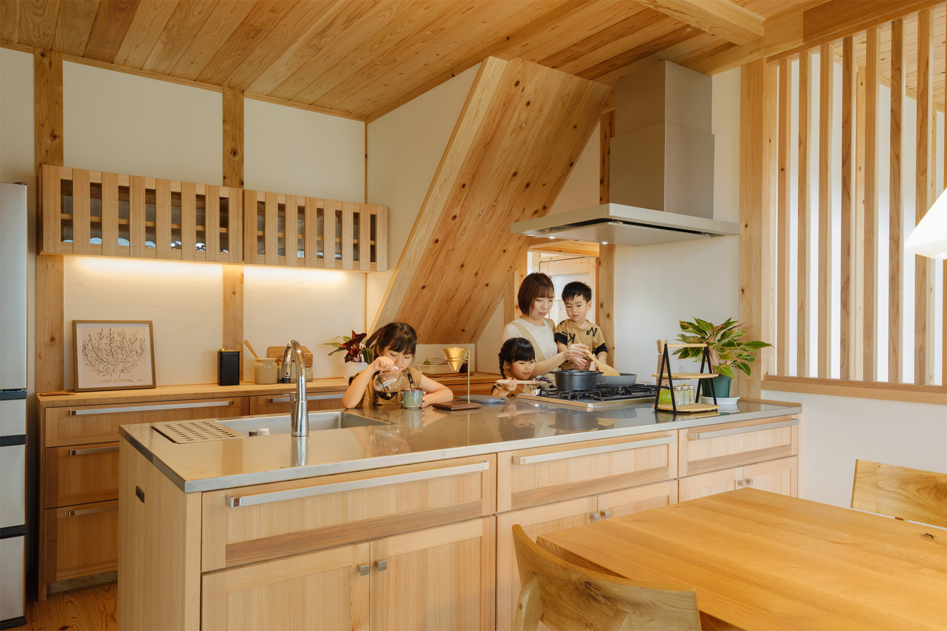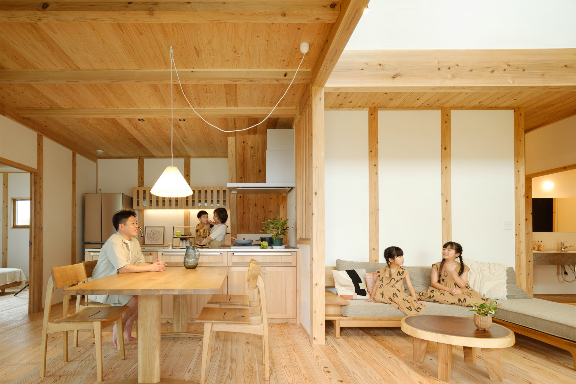 また、木のぬくもりと幻の漆喰壁が織りなす、やわらかな空気感も体感いただけます。 -