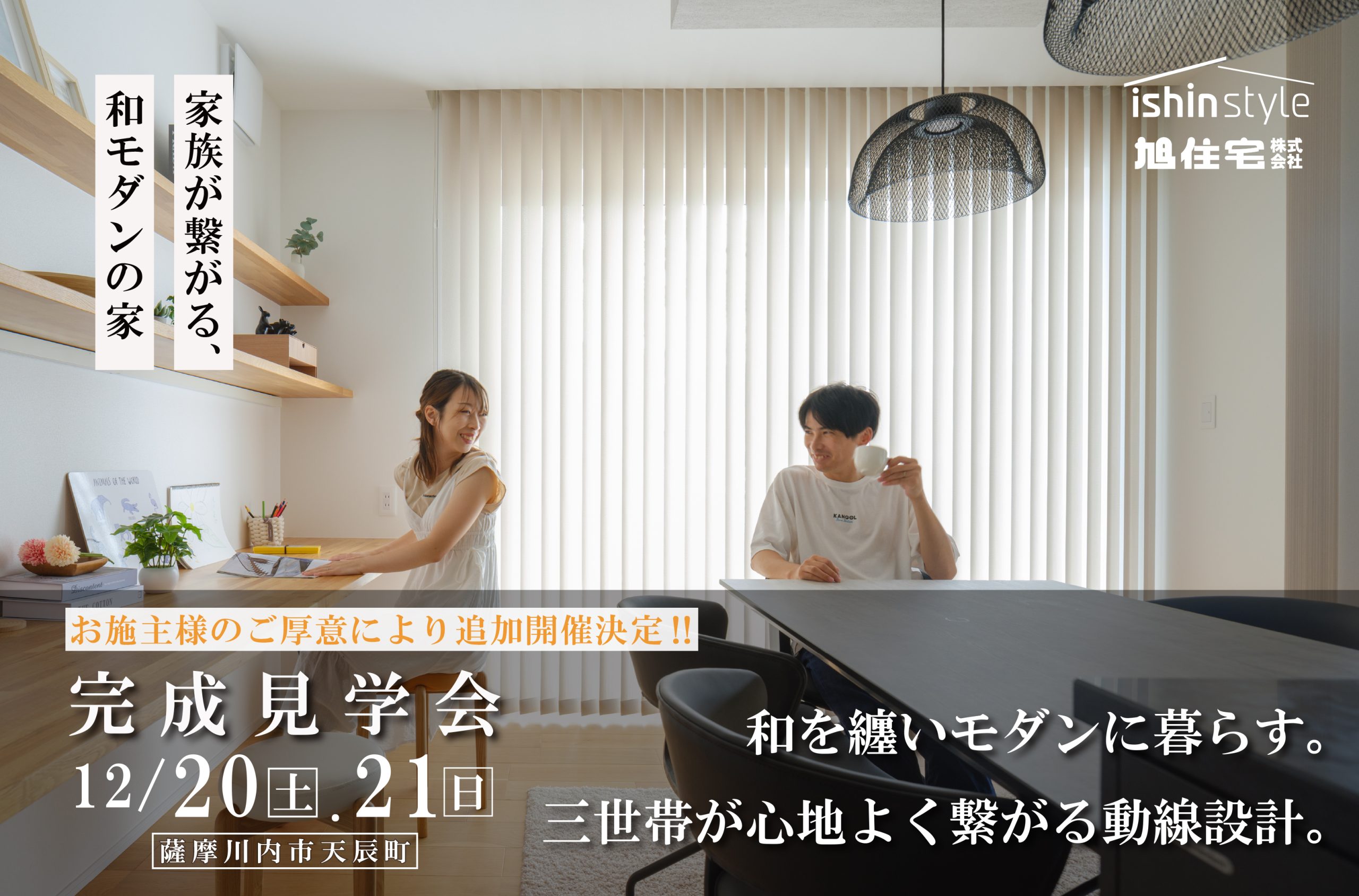 【12/20(土)21(日)完成見学会】家族が繋がる、和モダンの家。