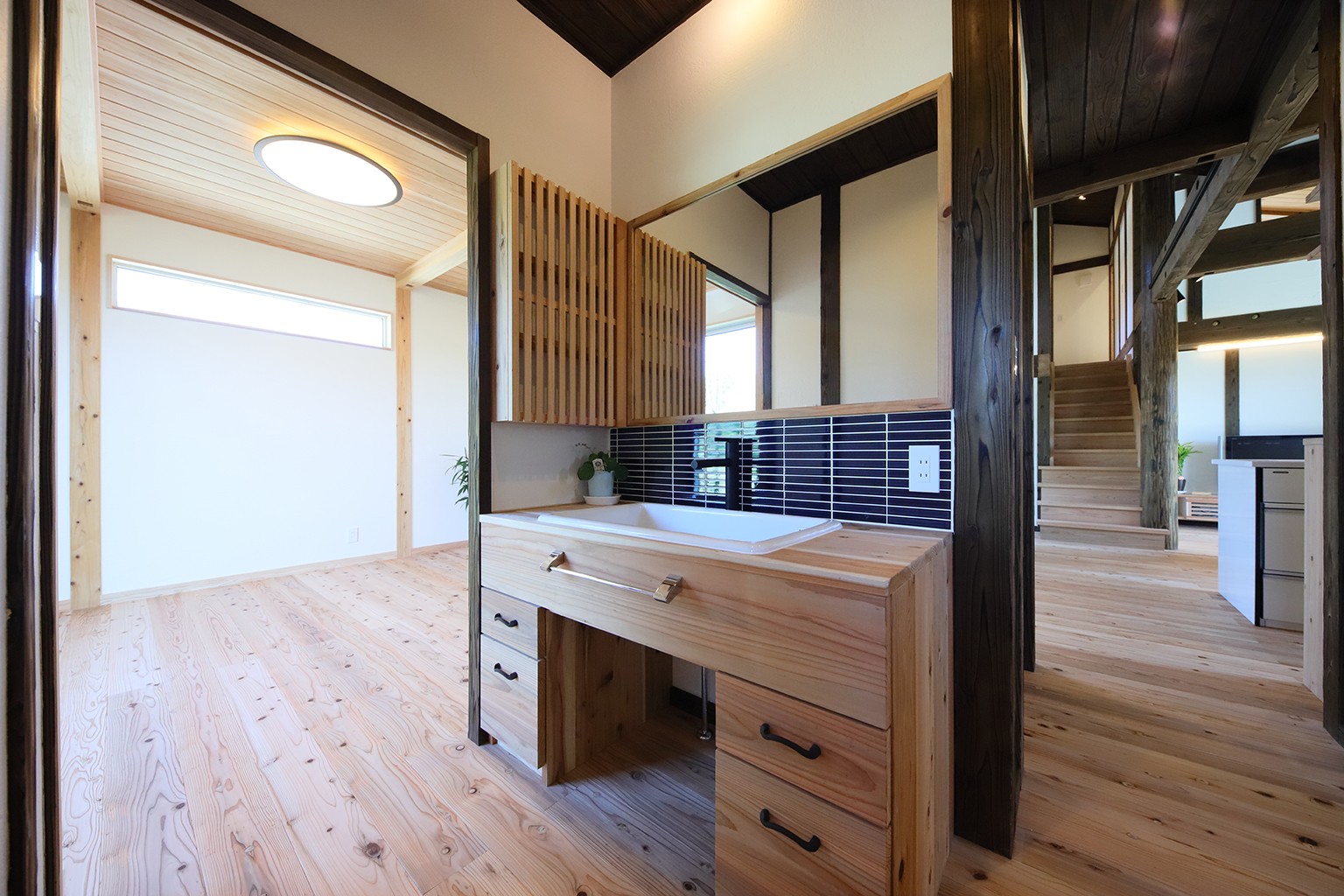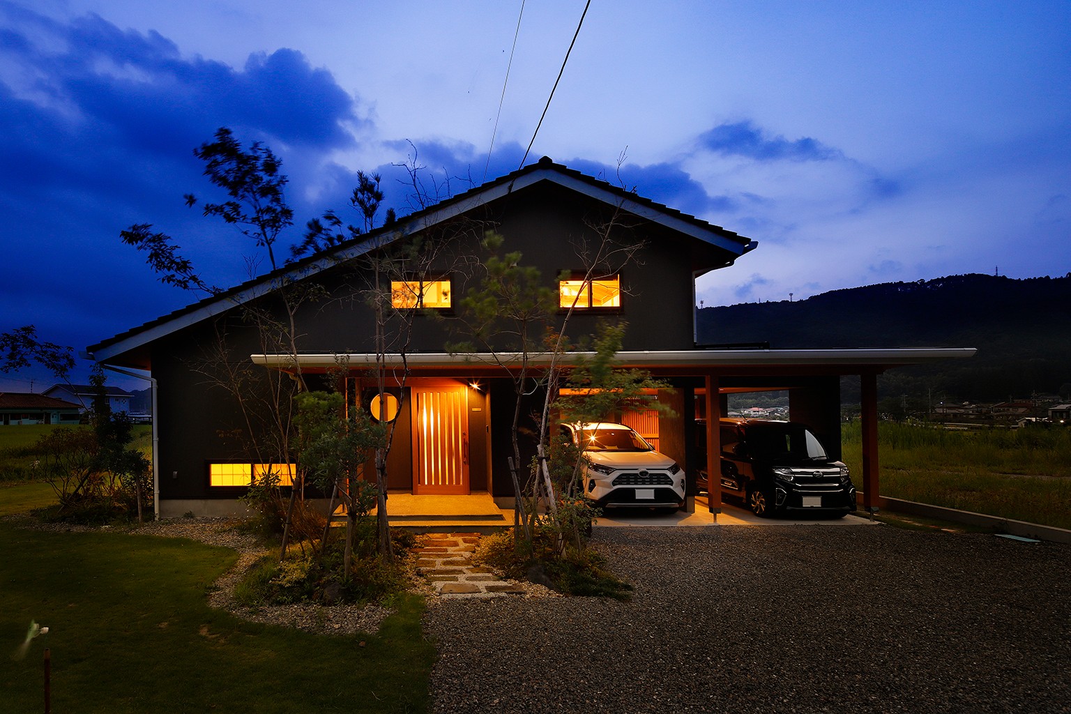 works自然とともに過ごす家 #アイランドキッチン#オーナーの声#二階建て#平屋 所在地霧島市 家族構成ご夫婦+お子様1人 延床面積148.64m² 間取り4LDK 2階建 1本の杉の木から作った手造り木製玄関ドア アイランドキッチンでお料理を楽しく 寝室からも緑を取り込む 将来仕切れるよう考えられた子供室 手作り洗面台で気分も上々 ビルトインガレージで濡れずに室内へ 雰囲気の良い夜景 voiceオーナー様の声 霧島市 N様 希望を全て叶えた住宅 土地探しから建築までお世話になりました。 たくさんの希望を全てしっかり叶えてもらい満足しています。 子どもの成長やライフスタイルなどを見越した提案も嬉しかったです。