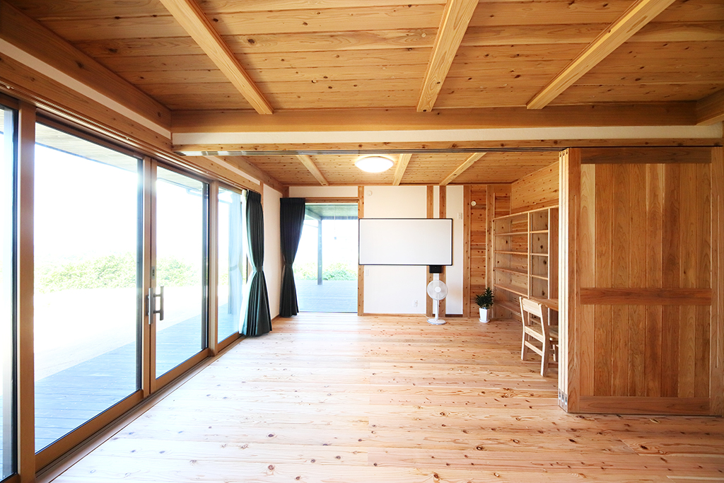 works眺望を楽しむ家 #ウッドデッキ#オーナーの声#勾配天井#和室#平屋 所在地阿久根市 家族構成ご夫婦 延床面積117.17m² 間取り4LDK フルオープン窓で開放的なLDK。 奥様ご自身で寸法までデザインされたこだわりの食器棚。 中央の仕切りで用途に合わせた部屋。 想い出の貝殻を埋め込んだ玄関。 天気を気にせず洗濯物が干せる広々としたウッドデッキ。 廊下にはたくさんの本が収納できる本棚。 voiceオーナー様の声 阿久根市 T様 白い漆喰の壁に囲まれて 新築のマイホームが完成し、思いがかなって大満足です。 木の香り、色、白い漆喰の壁に囲まれて、空気が心地良いです。