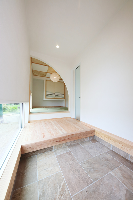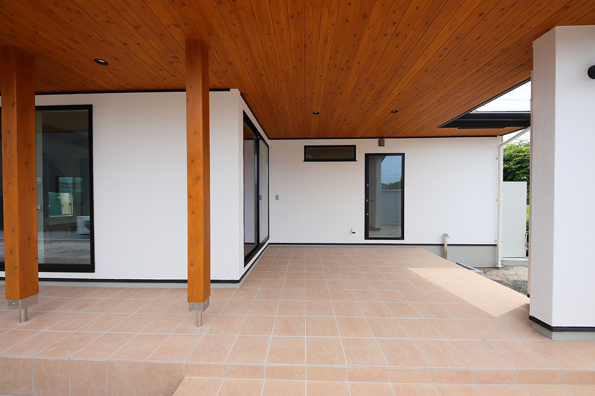 ひだまりでまったりと過ごす、タイルデッキのある家