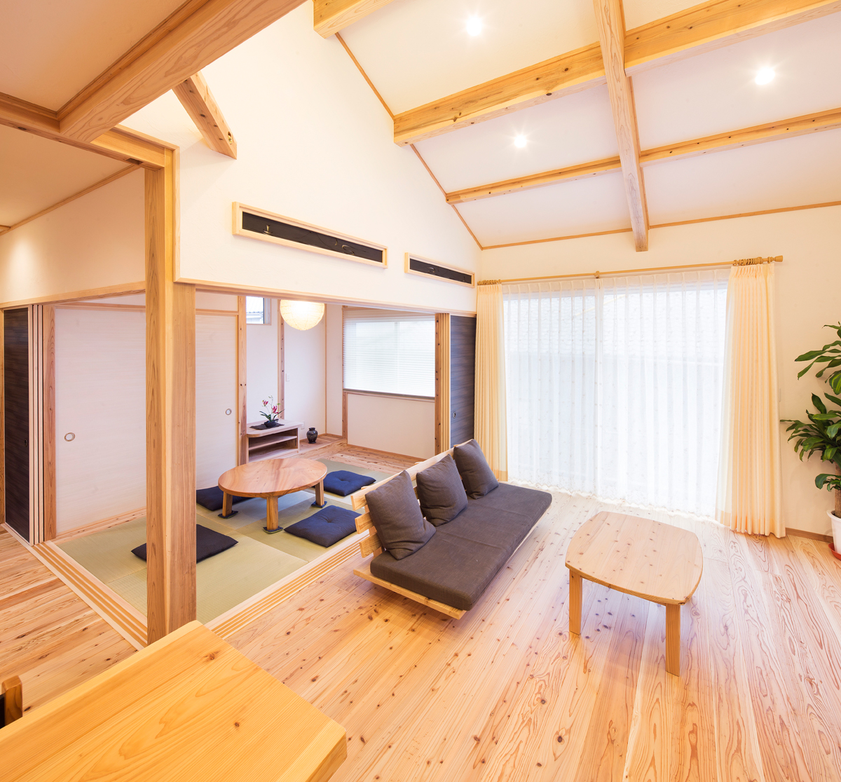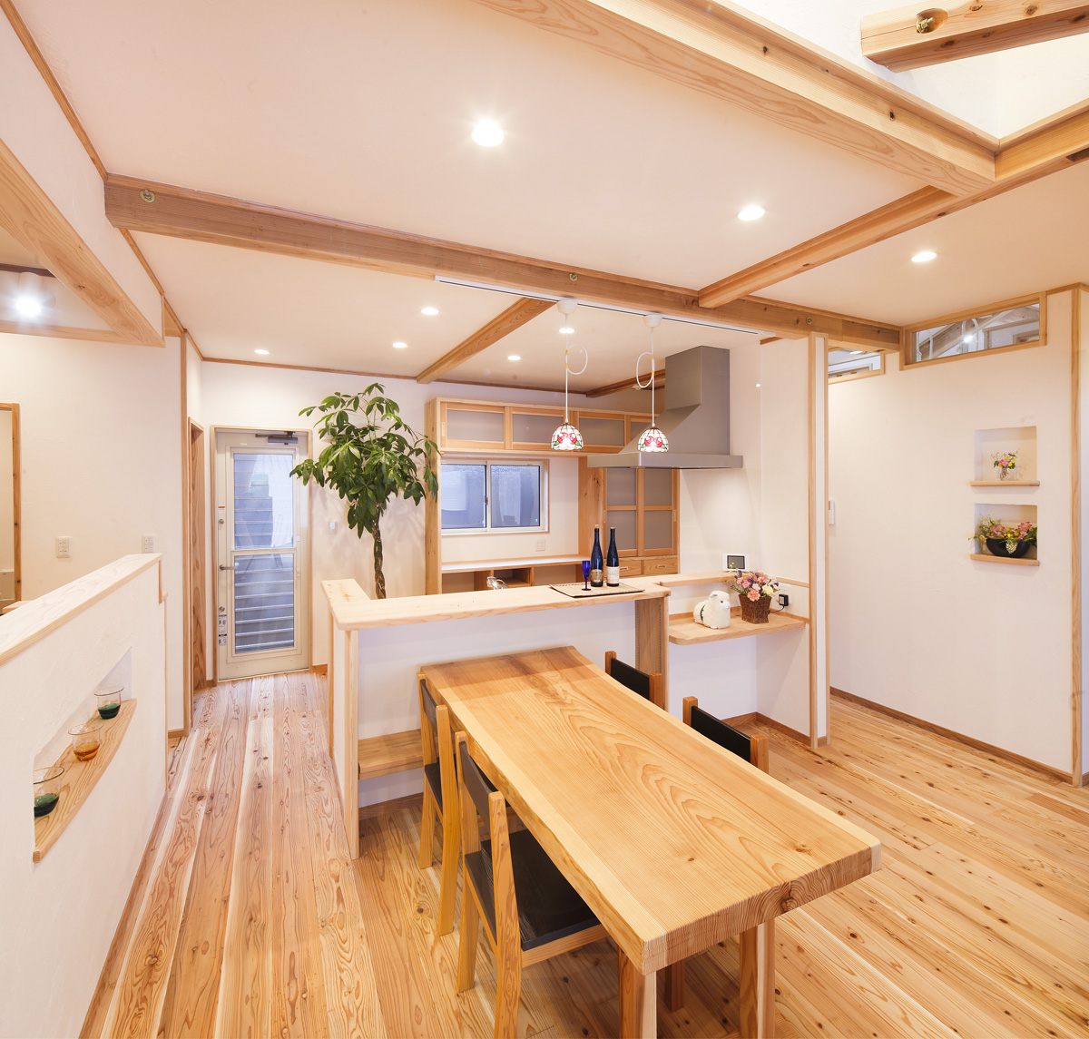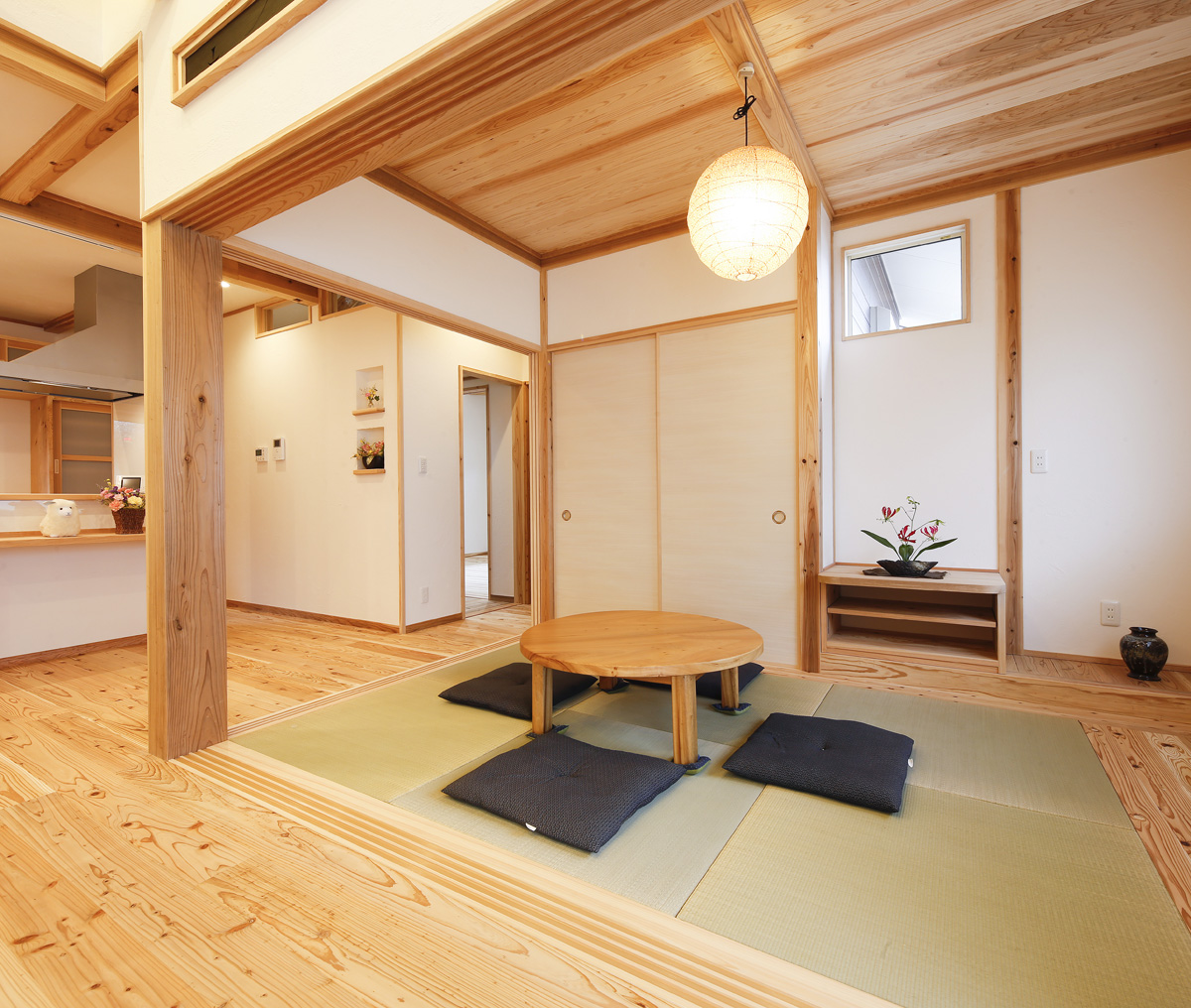 works和と洋の美点を活かした家 #オーナーの声#平屋 所在地いちき串木野市 家族構成ご夫婦+お子様3人+祖母 延床面積113.03m² 間取り4LDK 壁の飾りが印象的なリビング。 和室は建具で仕切れば個室へと。 造り付けの家具とステンドグラスの照明が目を引くキッチン。 ロフト部分は収納スペースでもベットとしてもOK。 voiceオーナー様の声 いちき串木野市 K様 自慢の我が家です とても快適な毎日を送っています。今までがかなり古い家に住んでいたせいもあると思いますが…あったかいです。自分たちの要望もほぼかなえていただいたので、使い勝手も良く、満足しています。もちろん"もっと~すればよかったな"と思うところもありますが自慢の我が家です。