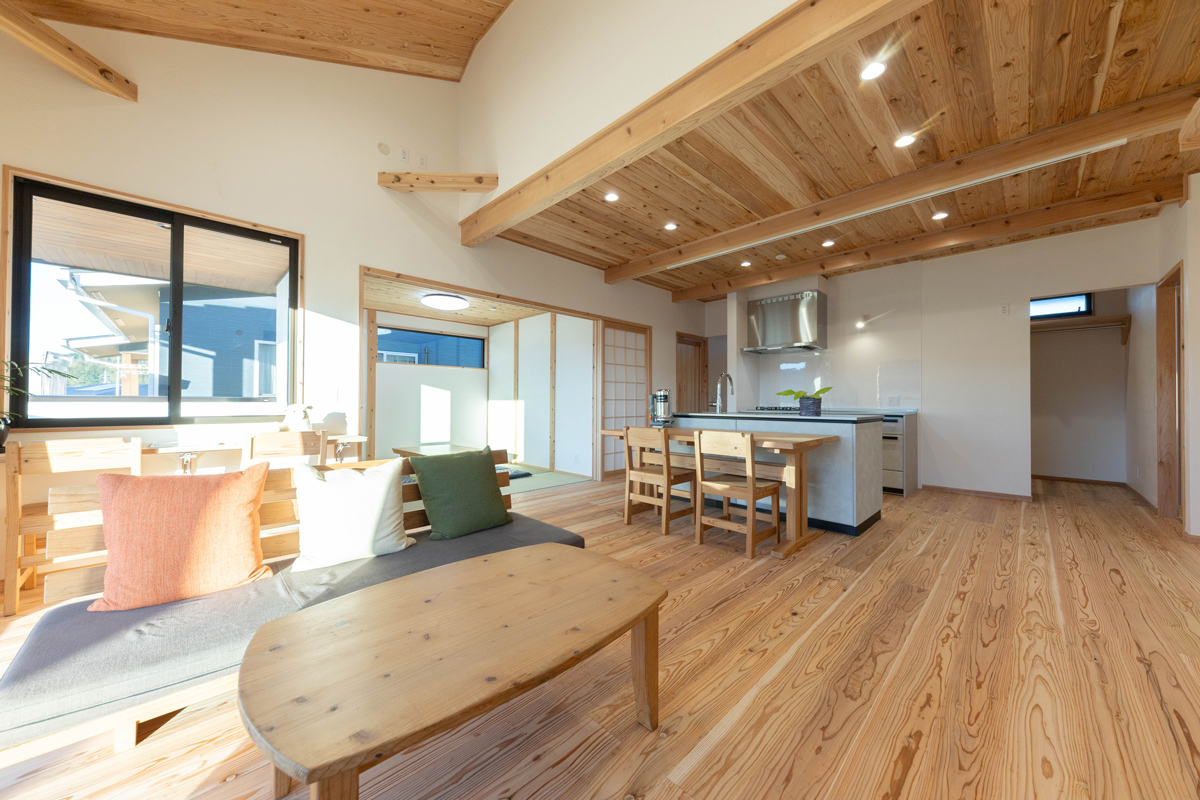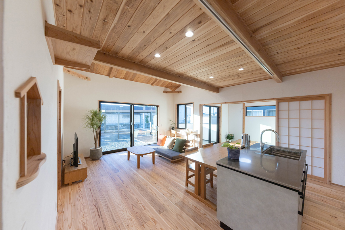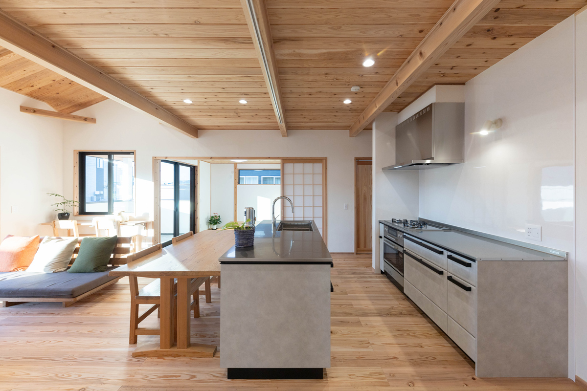 worksひだまりに包まれたくつろぎの平屋 #アイランドキッチン#オーナーの声#勾配天井#和室#平屋 所在地薩摩川内市 家族構成ご夫婦 延床面積89.13m² 間取り3LDK voiceオーナー様の声 薩摩川内市 D様 家を作ることがすごく楽しくできました たくさんの無理を言いましたが、その1つ1つに丁寧に対応していただき感謝です。 すごく楽しい家づくりができましたし、とてもお気に入りのお家になりました。